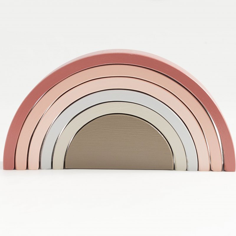 Y tantas otras cosas por descubrir con el ARCOÍRIS DE 6 PIEZAS. Sumergidos en la simpleza del arcoíris nos adentramos a un mundo mágico, descubriendo un amplio abanico de posibilidades por su gran versatilidad, dado que sus piezas pueden ser apiladas, ordenadas por tamaño, alineadas, y con ellas construir innumerables escenarios de mayor tamaño que recreen historias de la vida real (pueden ser puentes o túneles para los autos, torres, montañas, casas para los muñecos, laberintos de bolitas) fomentando el juego simbólico, la creatividad y la imaginación. Sus piezas pueden apoyarse desde diferentes bases otorgando la posibilidad de construir figuras tanto bi como tridimensionales, de gran altura o superficie. Fomenta la estimulación de funciones cognitivas como el uso de la lógica, la concentración, la atención, la resolución de problemas, presentándose desafíos de equilibrio y contrapesos en las construcciones. Por tener duplicadas sus piezas ofrece un plus de estimulación, pudiendo trabajar con él las simetrías, categorizar las piezas por tamaño y color. Es un producto tan versátil que se complejizará a medida que el niño crezca y desarrolle habilidades.