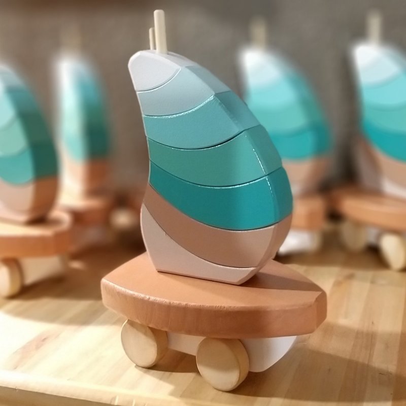 Es ideal para acompañar al niño en la primera infancia, desarrollando la creatividad y fomentando el juego simbólico a partir de la creación de diferentes figuras y escenarios con los bloques (se pueden formar otros veleros más pequeños, muebles para muñecos, sendas para autitos y mucho más). Invita al desplazamiento a través del gateo que permite descargar peso en las manos y asi fortalecerlas y prepararlas para experimentar distintas funciones manuales.